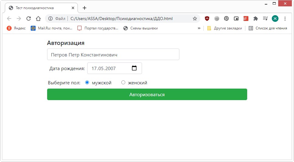 Тестируемые двойным щелчком мыши запускают файл, в открывшемся окне заполняют свои данные и нажимают «Авторизоваться»: