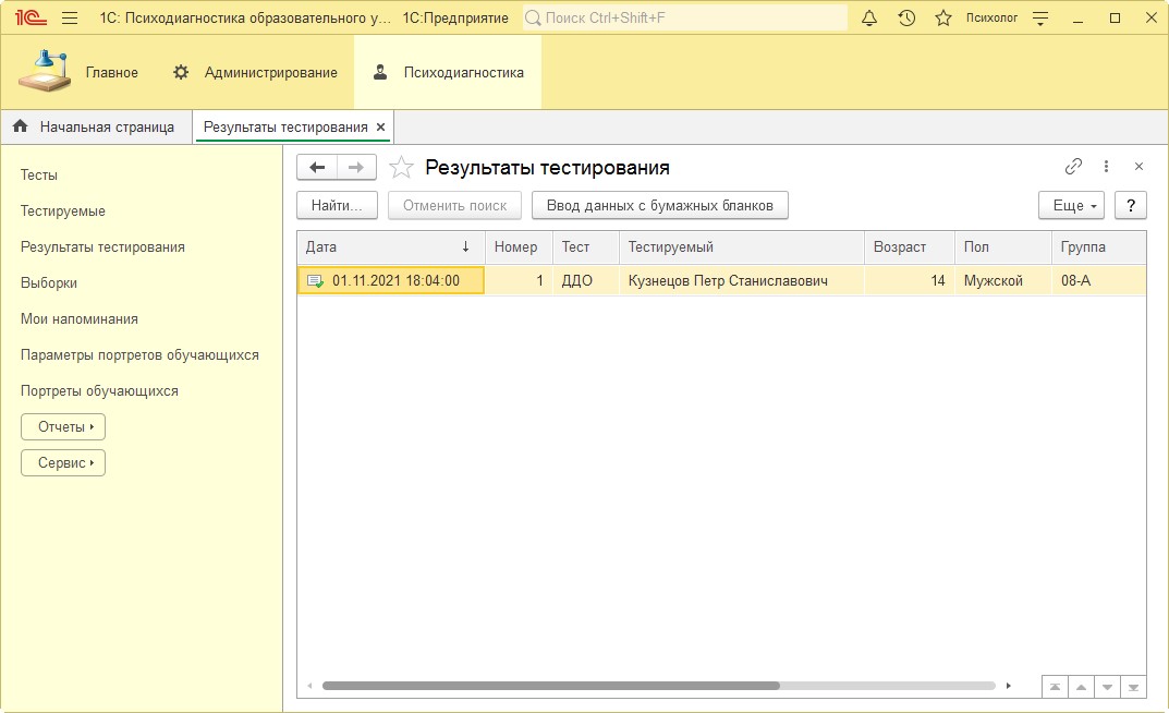 После внесения результатов с бумажных бланков результаты тестирования должны отобразиться в программе: