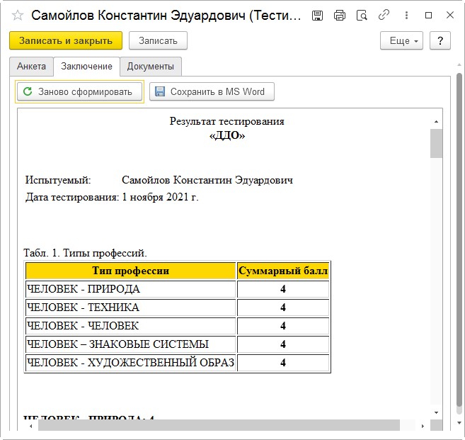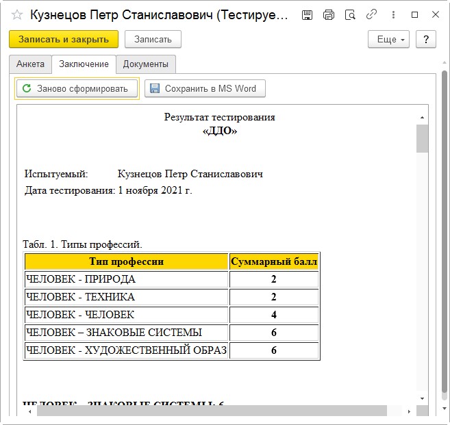 Проведите диагностику, используя батарею «Профориентация» ученика 8А класса Жукова Максима. Сохраните результаты диагностик в папку «Результаты тестирования».