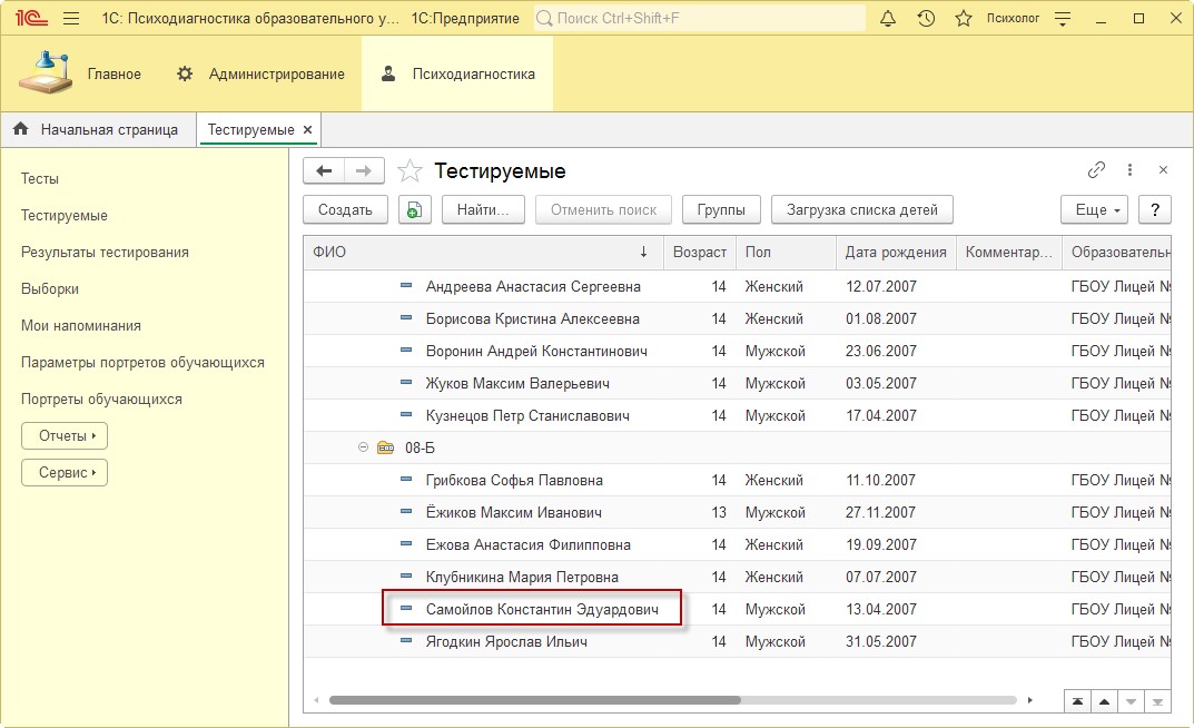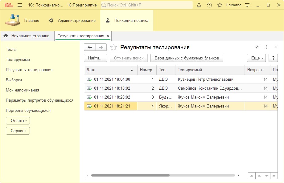 После диагностики войдите в программу в режиме «Психолог».
