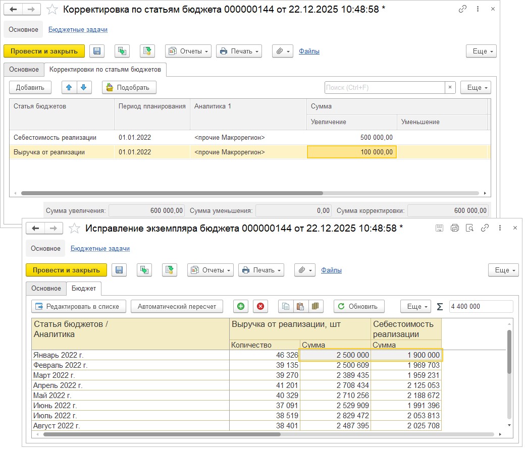 Ранее утвержденные и введенные экземпляры бюджетов могут быть откорректированы или исправлены.
