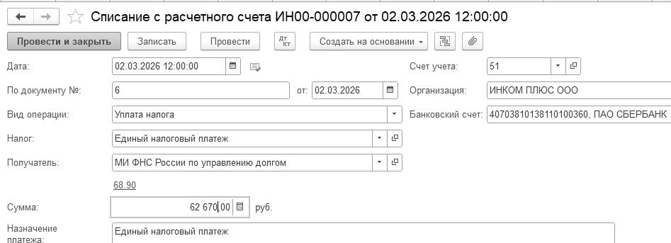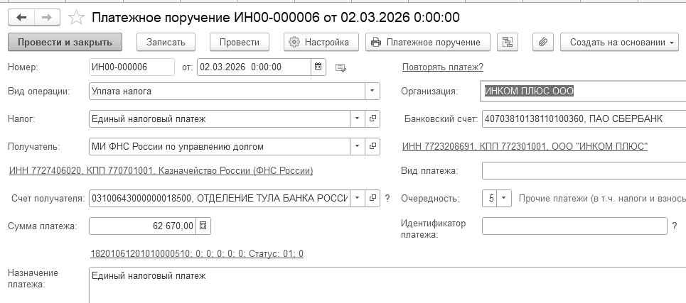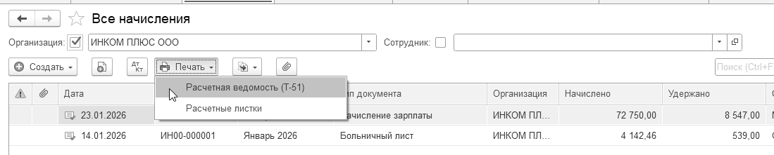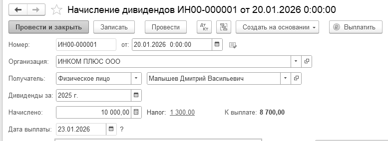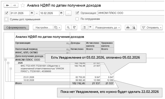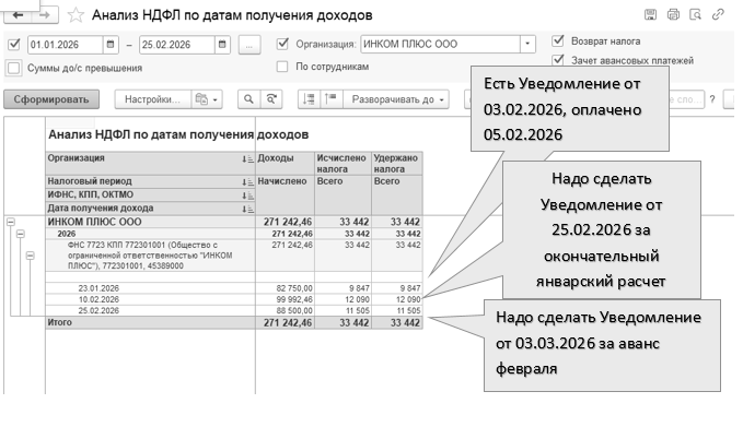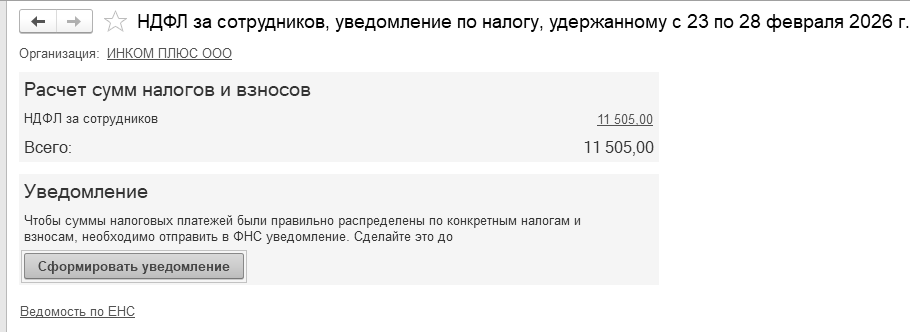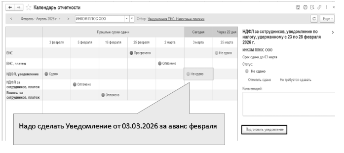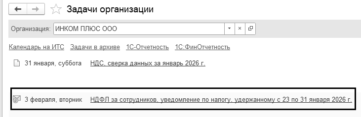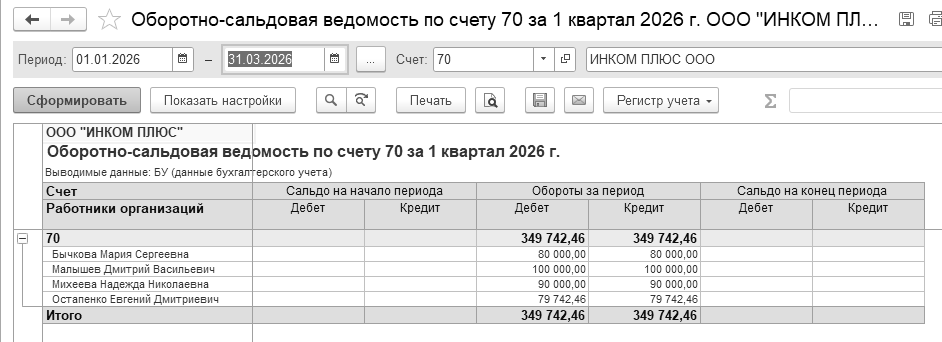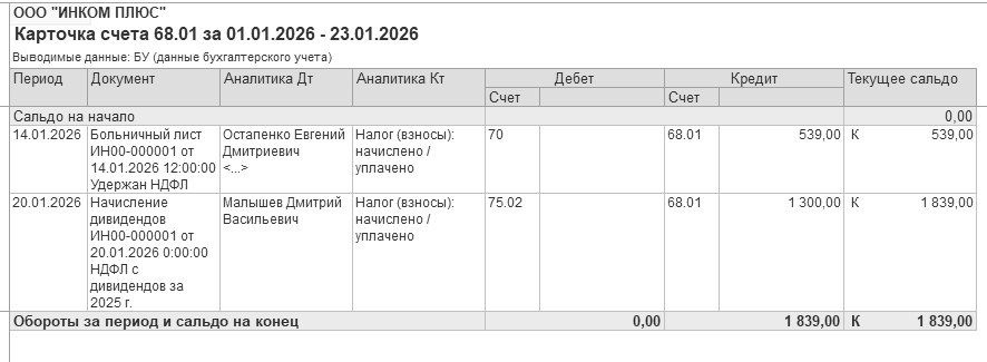 Создайте отчет "6-НДФЛ" за I квартал 2026 года по организации "ИНКОМ ПЛЮС".