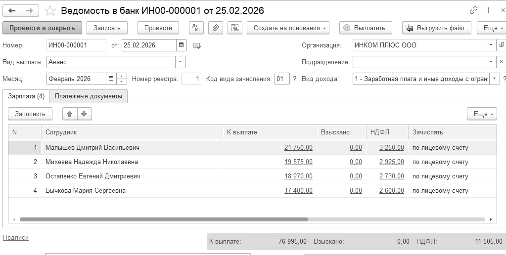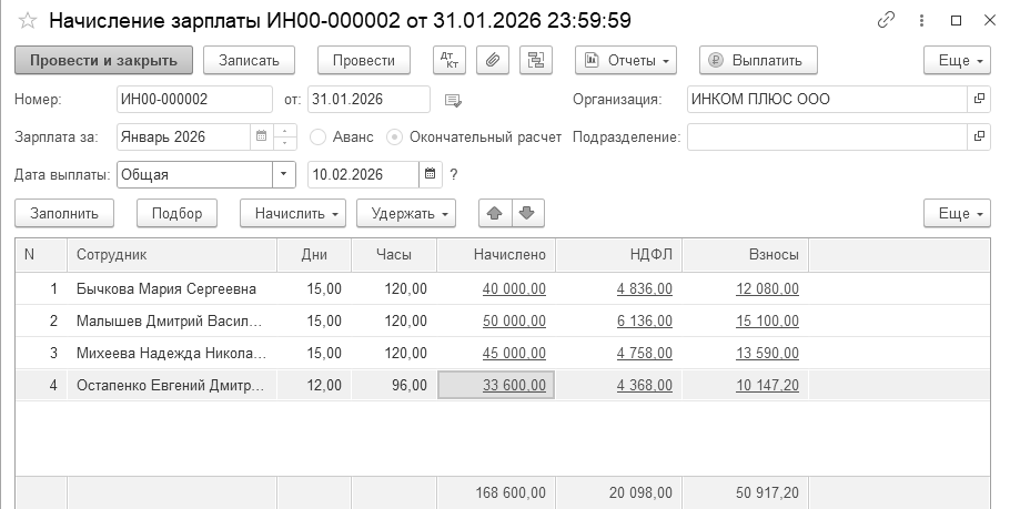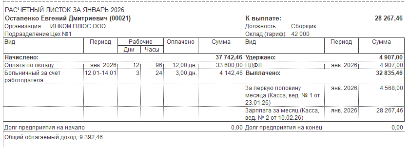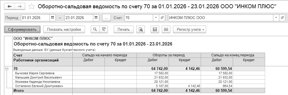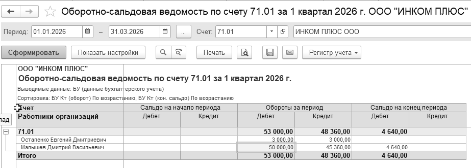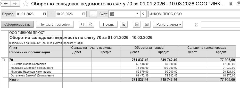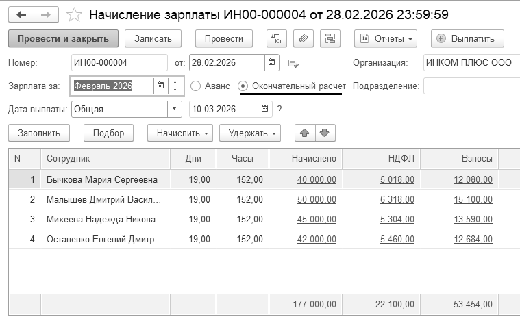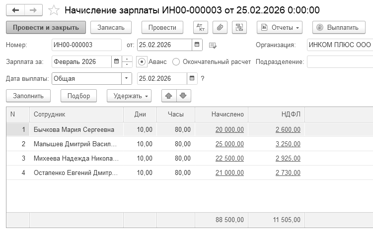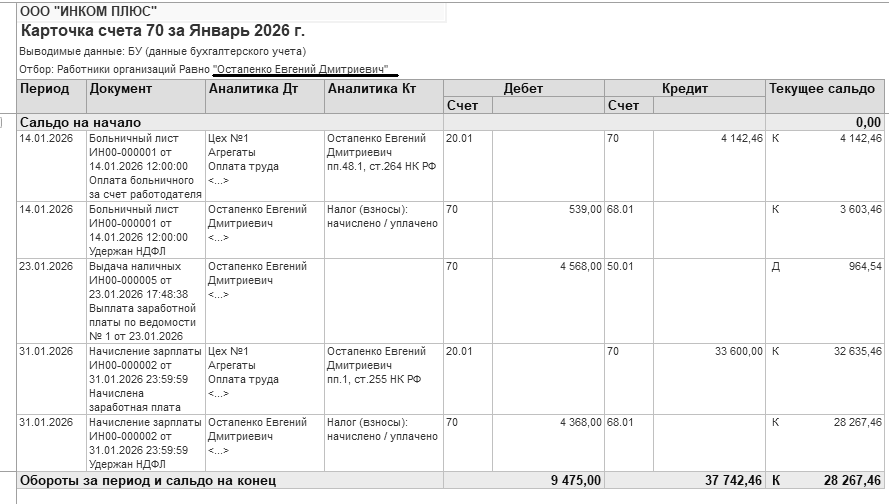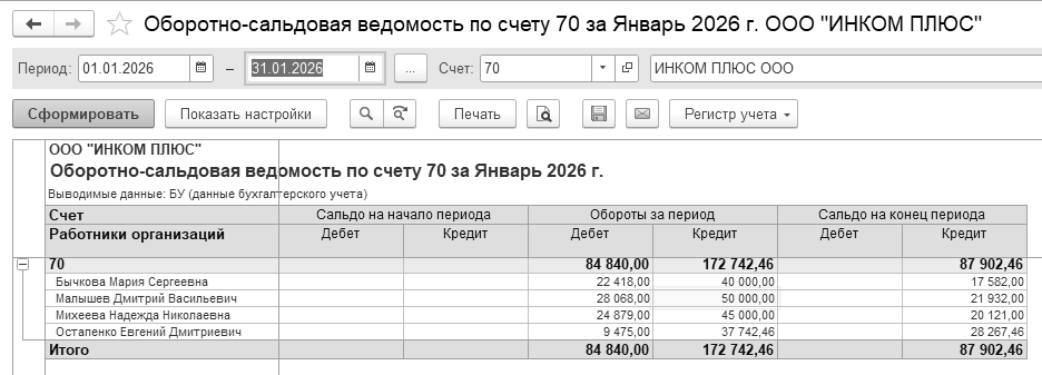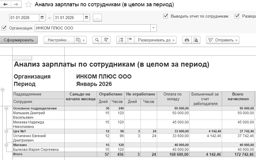 Дата отчета 27.04.2026 года. В отчет попали данные за январь и февраль, так как зарплата март в методичке еще не формировалась. Будет рассмотрена при закрытии месяца.