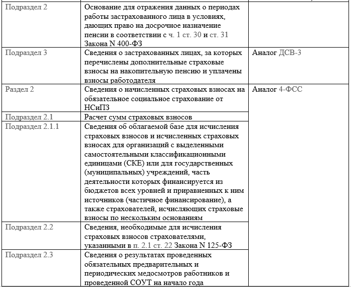 Форма ЕФС-1 осталась прежней, за исключением удаления поля из подраздела 1.2 (Сведения о страховом стаже) – "Назначение выплат по ОСС". Это поле не используется при сдаче годовой отчетности о страховом стаже.