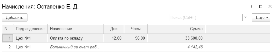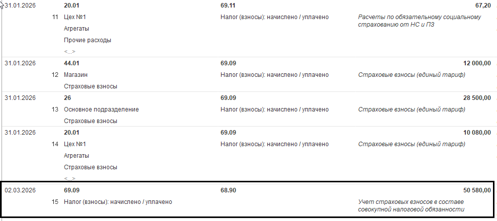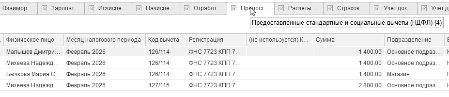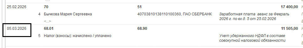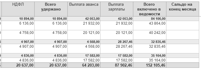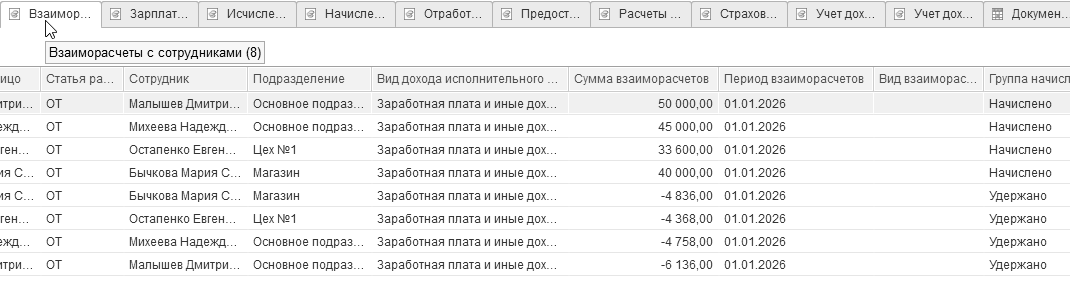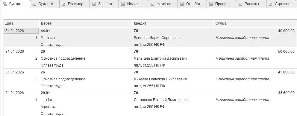 В отчет попали данные за январь и февраль, так как зарплата март в методичке еще не формировалась. Будет рассмотрена при закрытии месяца. На рисунке 8.6.5 представлен фрагмент отчета.
