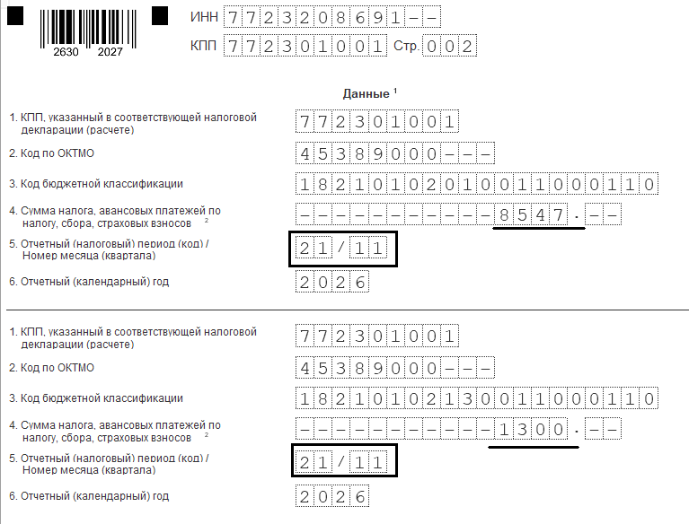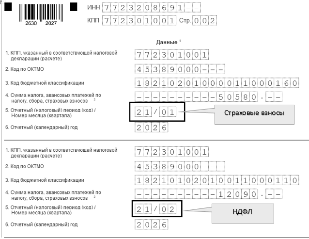 Если налоговый агент выплачивал физическим лицам в течение налогового периода (отчетного периода) доходы, облагаемые по разным ставкам, разделы 1 и 2 заполняются для каждой из ставок налога.