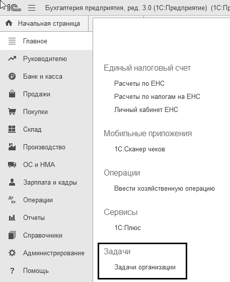 (меню "Панель разделов/Банк и касса/Панель навигации/Касса/