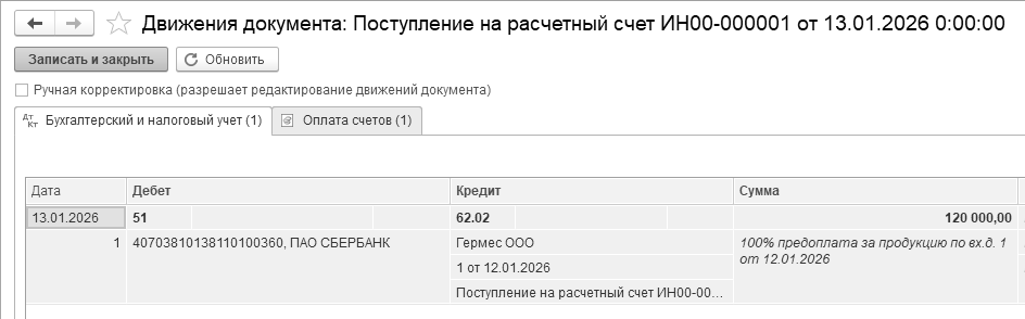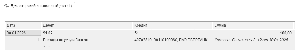 Поступление билета 26.01.2026 на дату вылета 30.01.2026 года заполнить самостоятельно. Проведенные документы оформят проводки: