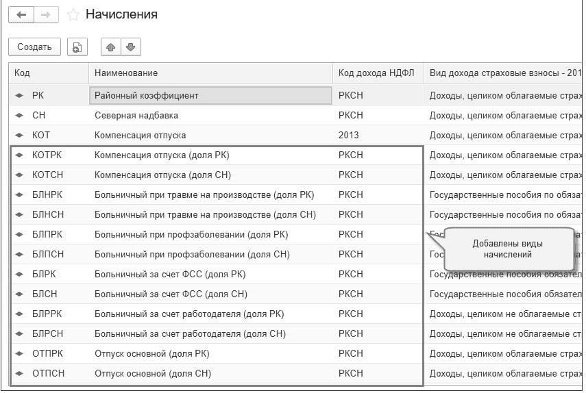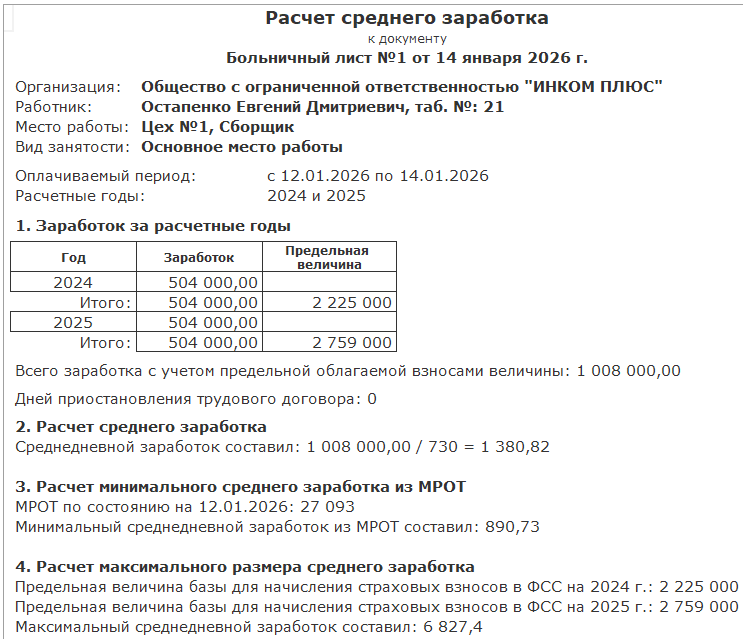 В программе приложение № 1 заполняется автоматически для следующих кодов отчетного периода: 34, 51, 52, 53, 90 (приложение № 1 к Порядку заполнения расчета).