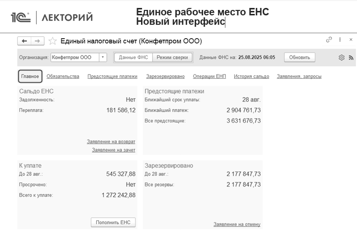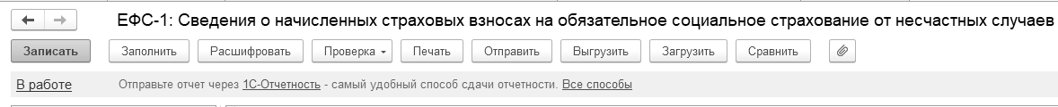 (меню "Панель разделов/Отчеты/Панель навигации/1С-Отчетность/Регламентированные отчеты/ЕФС-1")
