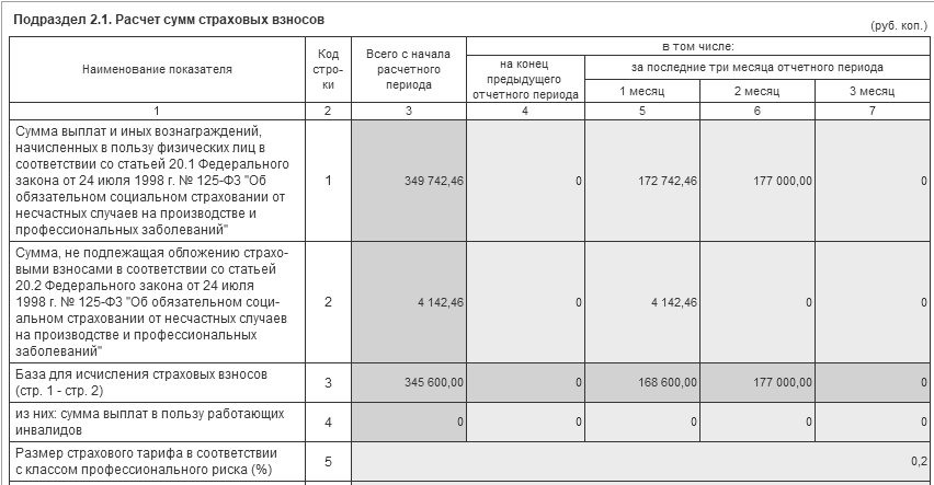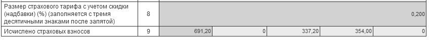 Рис. 8.6.11. Фрагмент формы отчета "Расчет страховых взносов", раздел 3
