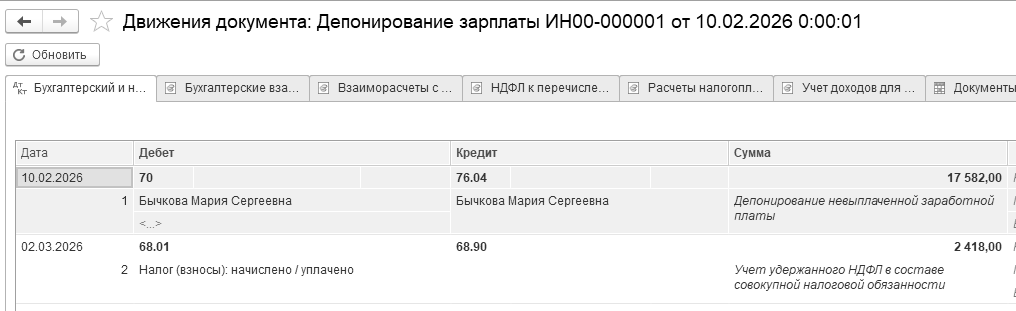 Рис. 6.1.12. Движения документа "Авансовый отчет"