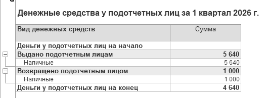 (меню "Панель разделов/Банк и касса/Панель навигации/Касса/Авансовые отчеты")