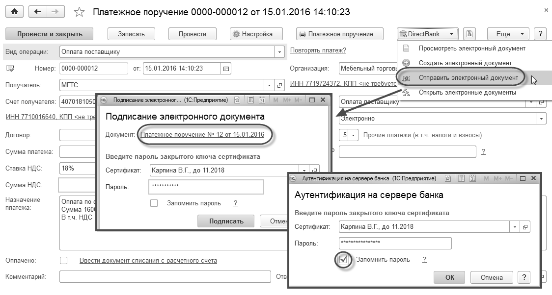На закладке "Авансы" будет автоматически отражена сумма выданных денежных средств. Здесь в графе "Документ аванса" будет выбран документ "Выдача наличных" на сумму 12 000 руб. Малышев Д.В.