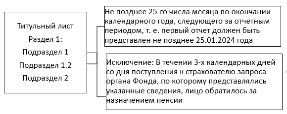 Для разных сведений, указываемых в единой форме, установлены разные сроки представления. Так, на схемах 8.6.1 - 8.6.4 представлены сроки подачи разделов 1 и подразделов.