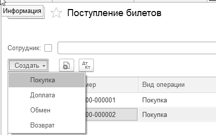 Рис. 6.1.4. Форма документа "Поступление билетов"