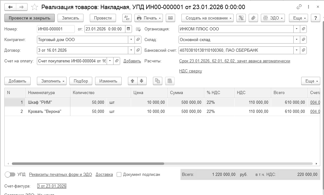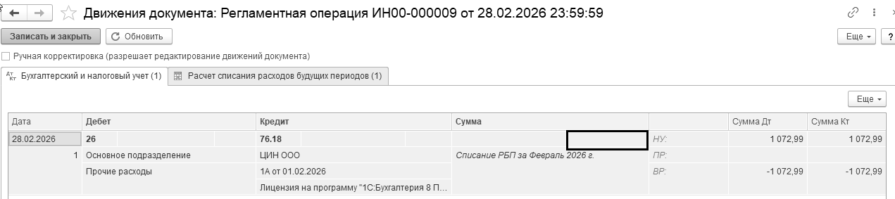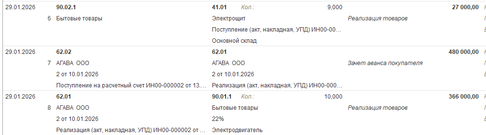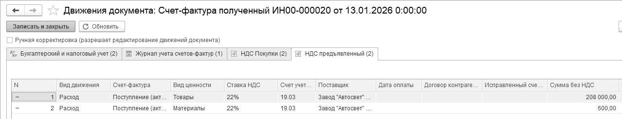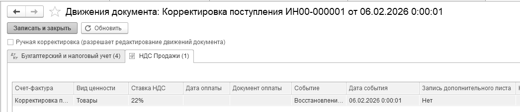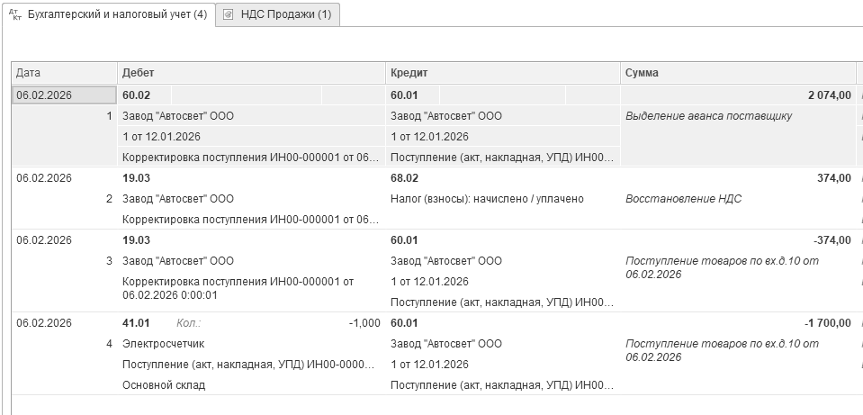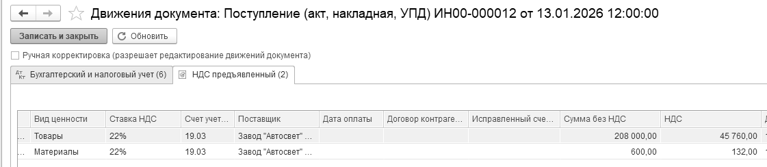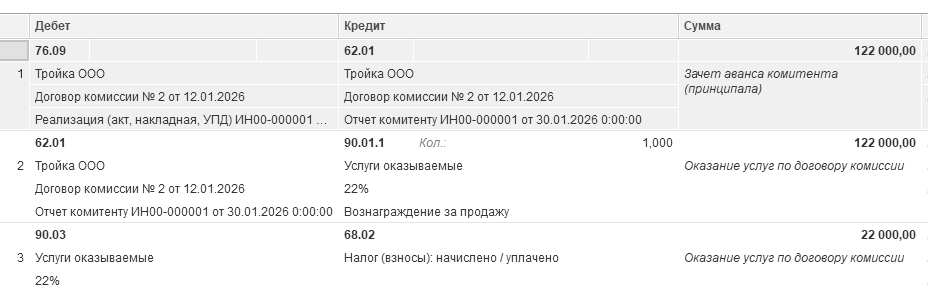 Бухгалтерские проводки проведенного документа будут следующие: