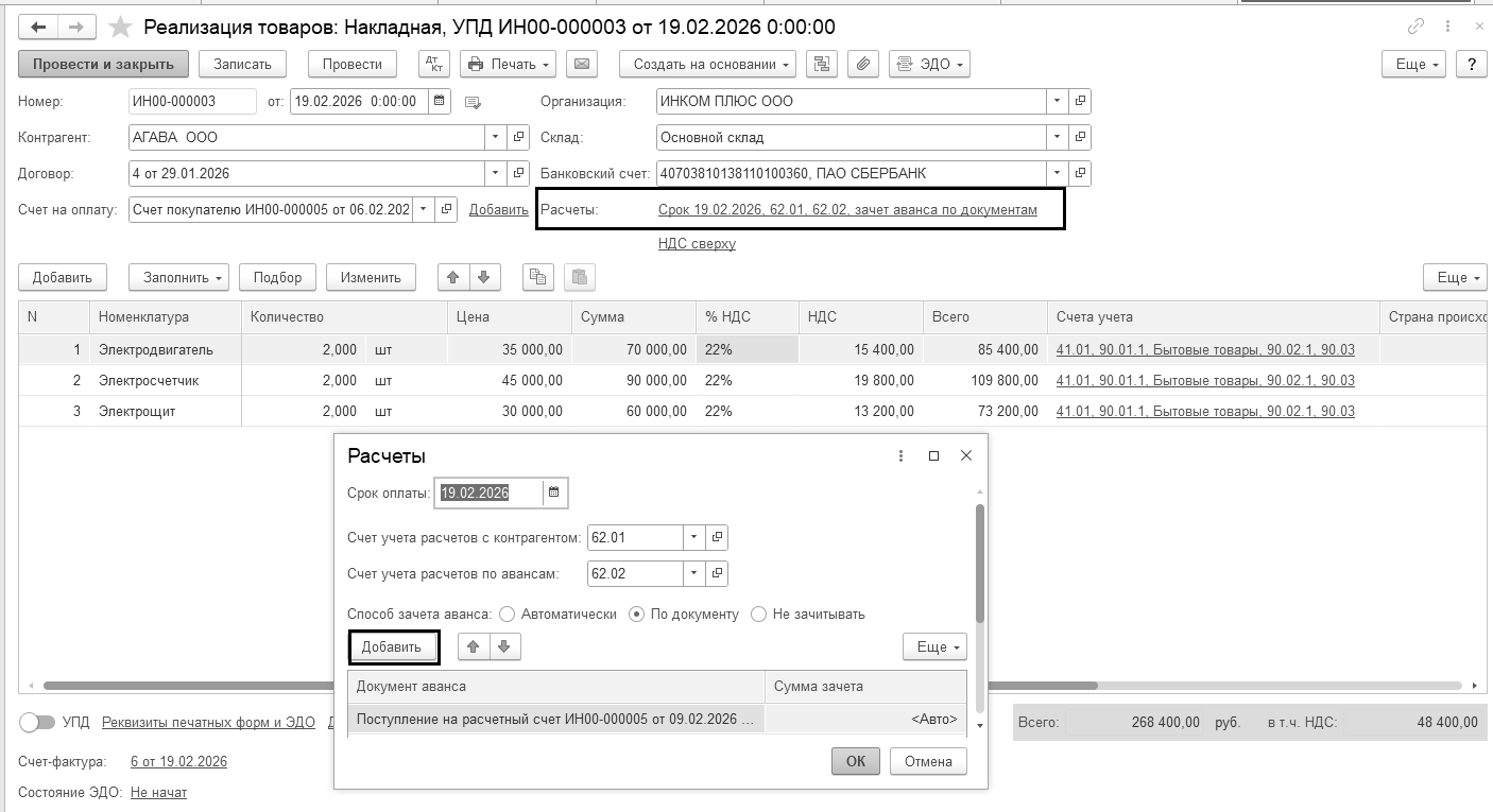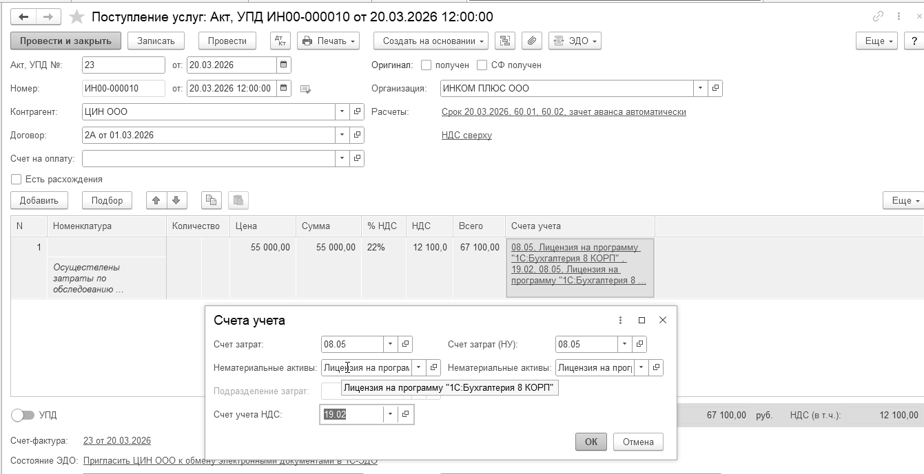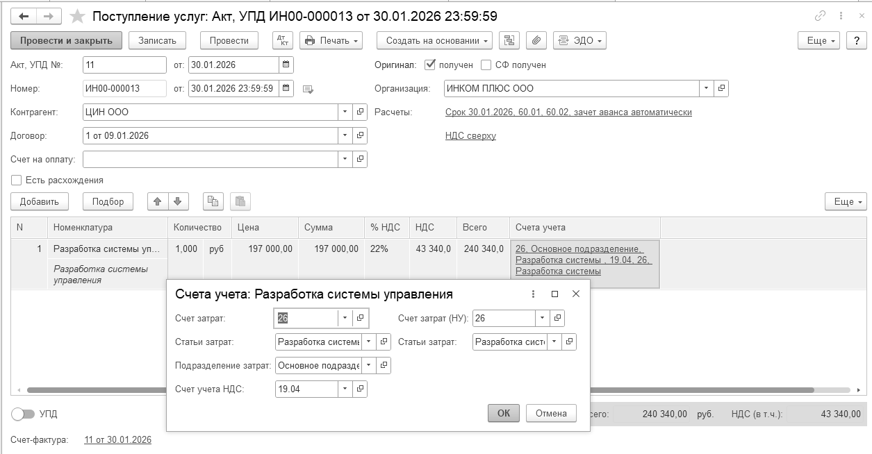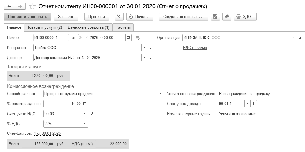 Бухгалтерские проводки проведенного документа будут следующие: