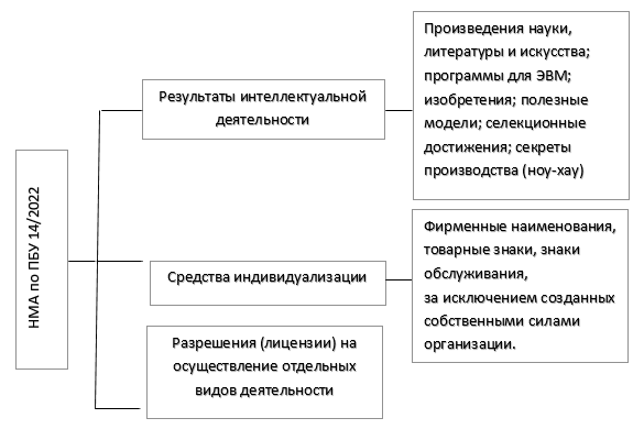 К НМА можно признать активы, указанные в схеме 10.1 (п. 6 ФСБУ 14/2022).