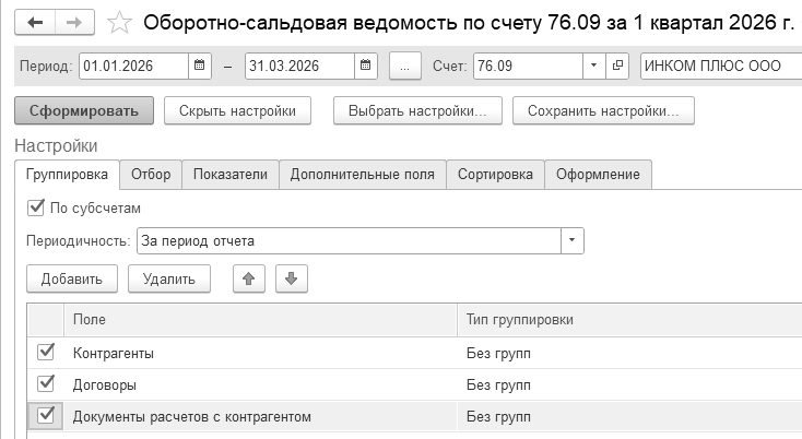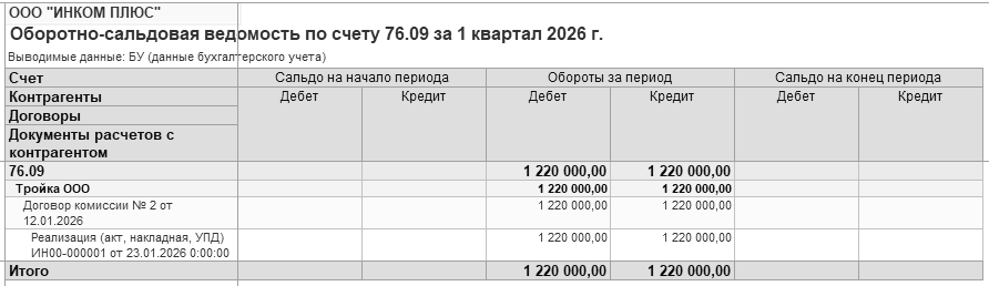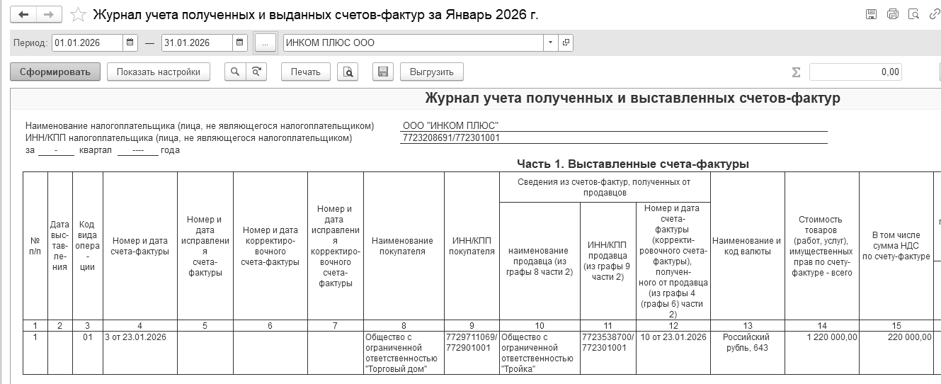 Сформируйте отчет "Книга продаж" за 1 квартал 2026 года. Результат проведения документа "Отчет о розничных продажах" - розничная выручка в сумме 34 160 руб. отразилась в книге продаж.