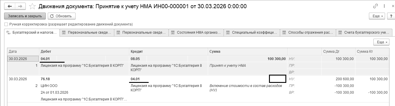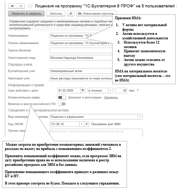 Единицей учета НМА считается инвентарный объект – это совокупность прав на него, возникающих в соответствии с договорами либо иными документами, подтверждающими существование у организации прав на такой актив.