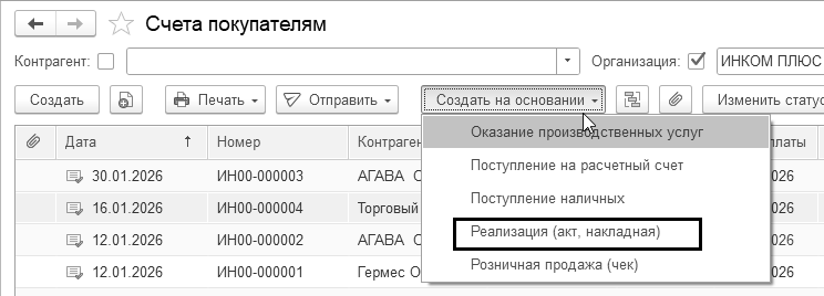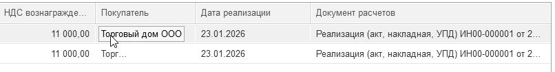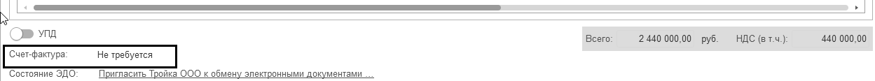 в форме документа "Счет-фактура выданный"