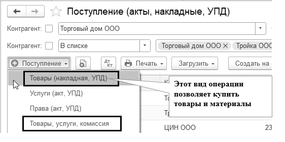 Документ "Оприходование товаров, материалов" используется в том случае, например, когда при инвентаризации установлены излишки товаров, которые подлежит поставить на баланс организации.