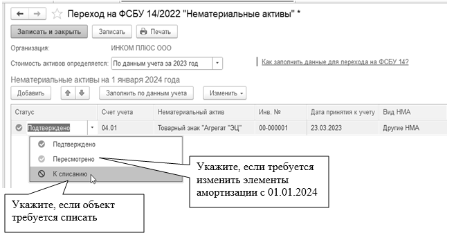 фирма имеет намерение завершить создание объекта НМА;