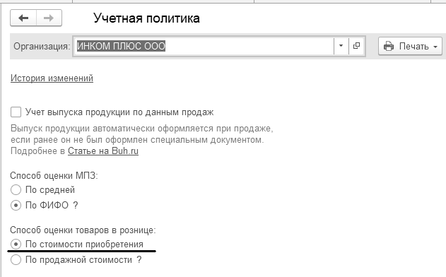 Розничные продажи в автоматизированных торговых точках отражаются документом "Отчет о розничных продажах", вне зависимости от способа оценки товаров в рознице.