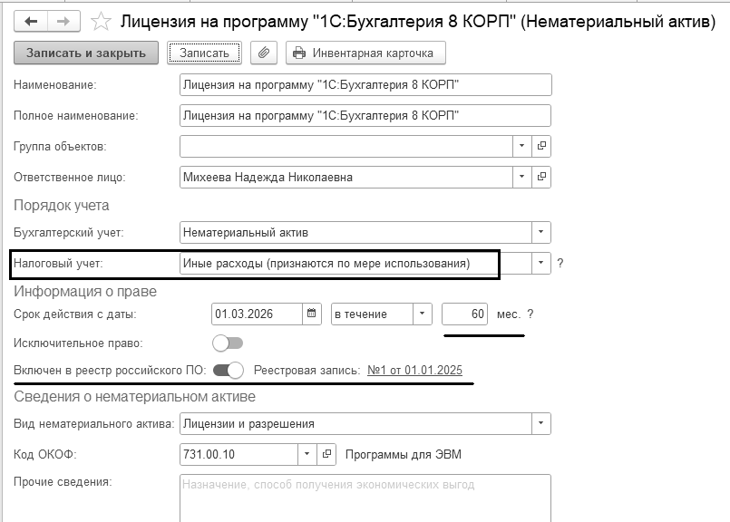 В программе 1С существует возможность вести учет затрат на выполнение научно-исследовательских, опытно-конструкторских и технологических работ, связанных с созданием собственных нематериальных активов. Поддержан учет затрат на стадии исследований и стадии разработок (п.17.4 ФСБУ 26/2020 "Капитальные вложения").