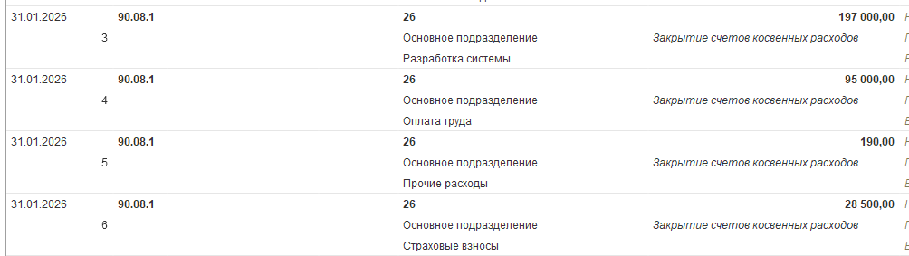 Регламентные операции/Закрытие счетов 20, 23, 25, 26")