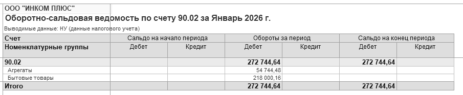 Остатков на 01.02.2026 года по счетам 20.01 "Основное производство", 26 "Общехозяйственные расходы" и 44.01 "Расходы на продажу" быть не должно. Обороты по дебету и кредиту счета 43 "Готовая продукция" за январь должны быть равны сумме 54 744,48 руб.