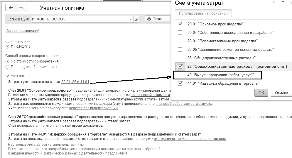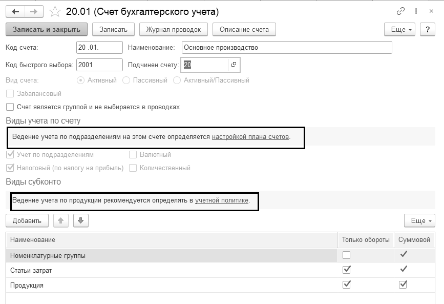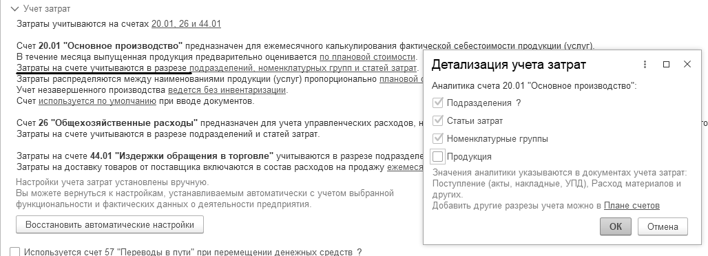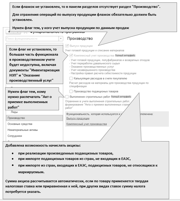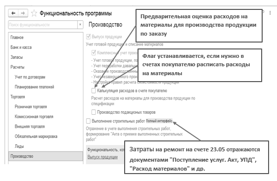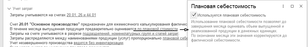 Перед началом учета производственного процесса следует вспомнить настройки параметров учета, в частности, обратиться к ссылке "Учет запасов" (меню "Панель разделов/Администрирование/Панель навигации/Настройки программы/Параметры учета").