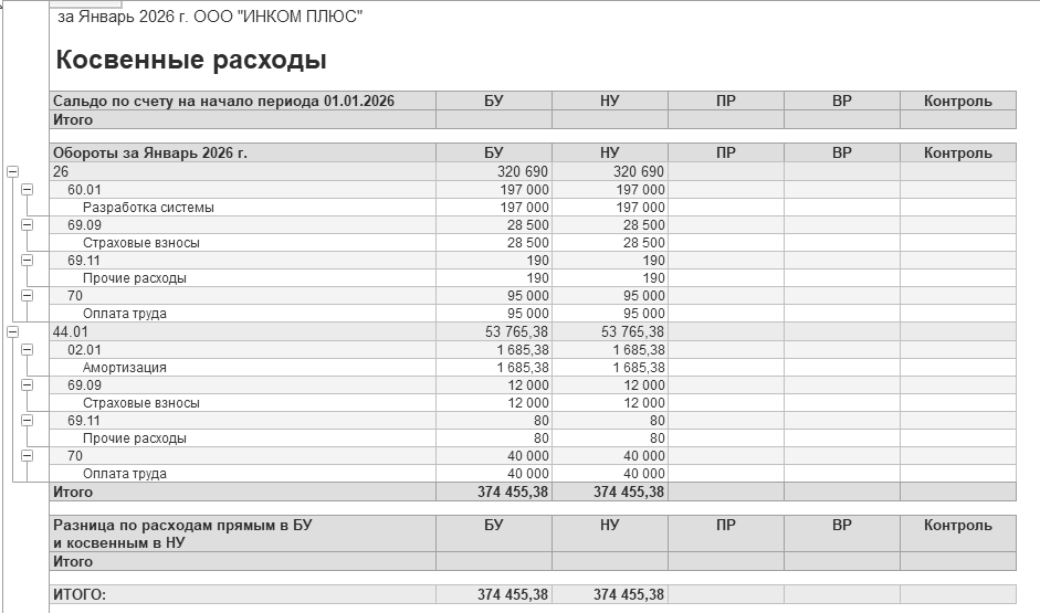 косвенных расходов на сумму 374 455 руб.;