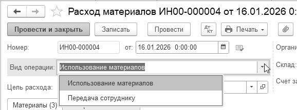 Документ "Поступление (акт, накладная, УПД)" служит для отражения многих операций, в т. ч. и операций по поступлению материалов. Вид операции устанавливается "Товары (накладная, УПД)" или "Товары, услуги, комиссия".