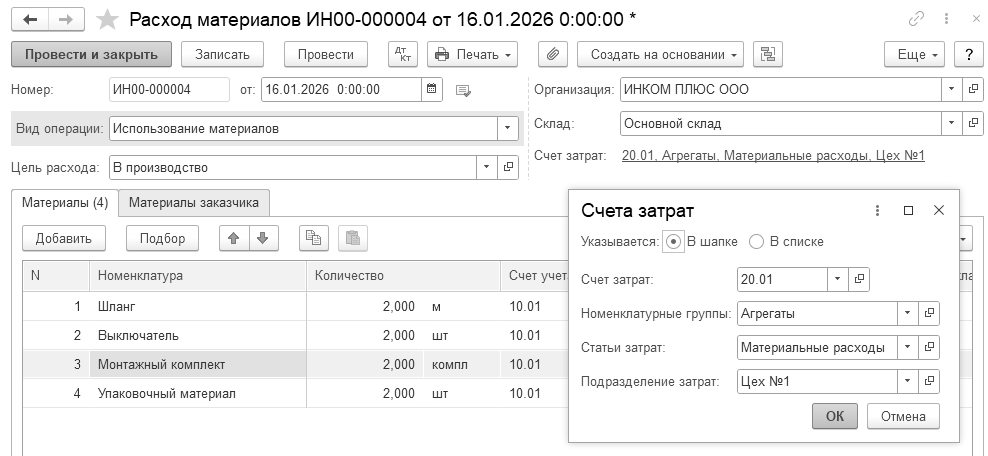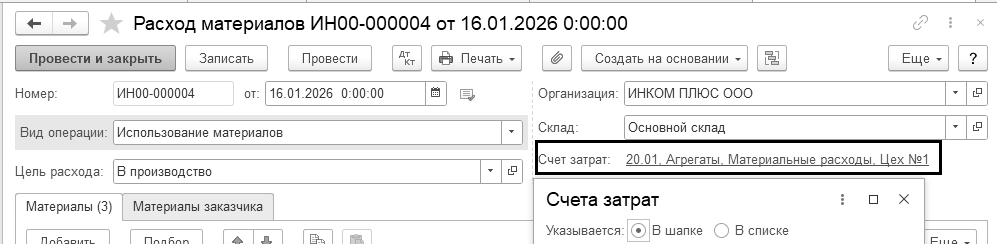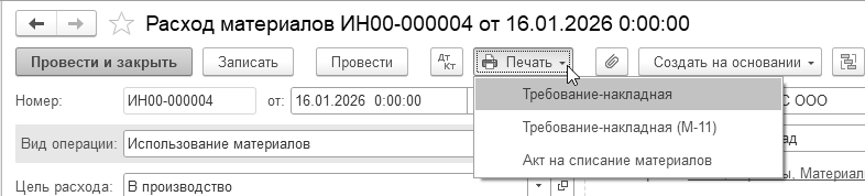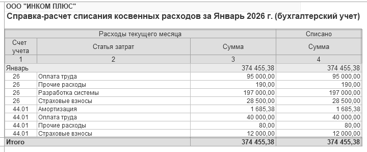 Сформируйте справку-расчет "Себестоимость выпущенной продукции и оказанных услуг" за январь 2026 года и проанализируйте записи (рис. 16.8).