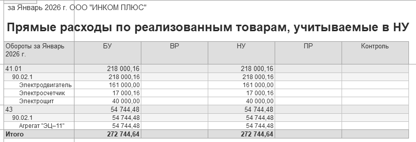 прямых расходов по реализации товаров, учитываемых в НУ на сумму 272 745 руб.;