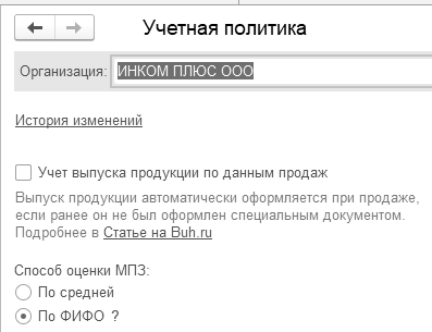 Настройка партионного учета влияет на реквизиты учетной политики. Денежное измерение стоимости запасов при выбытии должна быть ФИФО – первый пришел, первый и ушел. Фрагмент учетной политики представлен на рисунке 14.3.