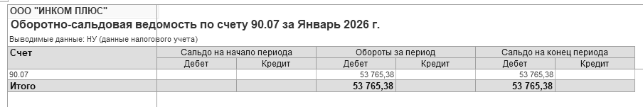 Разберемся с расходами. Сформируйте оборотно-сальдовую ведомость по счету 90.02, 90.07 и 90.08. Отчеты показаны на рисунках 16.16 – 16.18 соответственно.