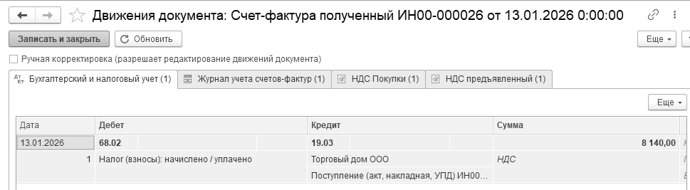 Проведенный документ сформирует проводку: