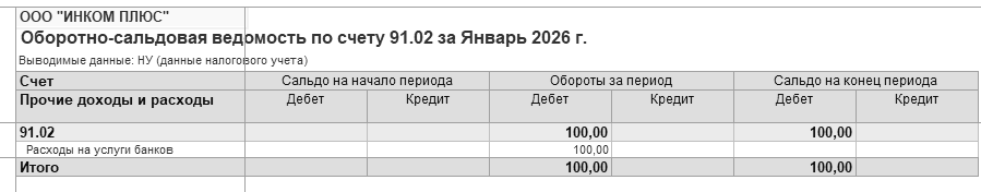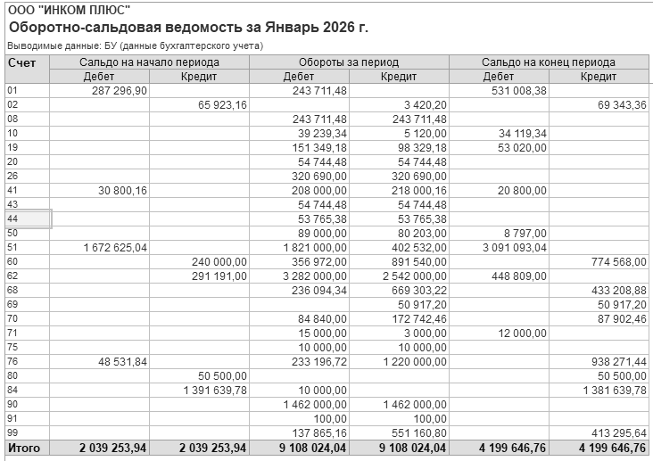 Сформируйте отчет "Оборотно-сальдовая ведомость" за январь 2026 года (рис. 16.4).