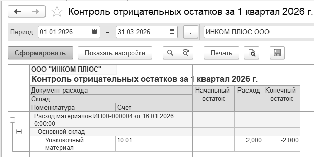 Если при формировании отчета не указать период, то отчет будет сформирован по учетным данным всего периода ведения учета в информационной базе.