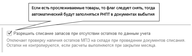 Рис. 14.2 Фрагмент окна "Параметры учета", ссылка "Учет запасов"