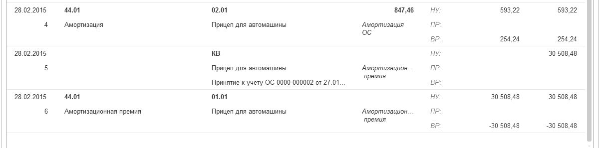 2. Учет расходов, если амортизационная премия применяется, и составляет 30% (предположим, что на прицеп – амортизационная премия применяется)