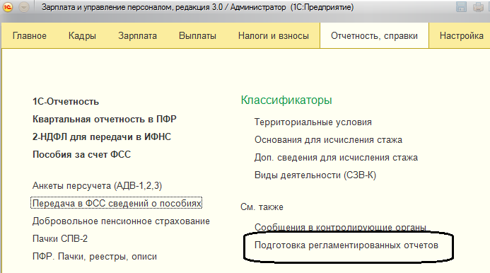 Подробнее о работе с регламентированными отчетами можно посмотреть в разделе по составлению формы 4-ФСС.