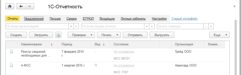 - Отправка в контролирующие органы отчетов, подготовленных в других программах.