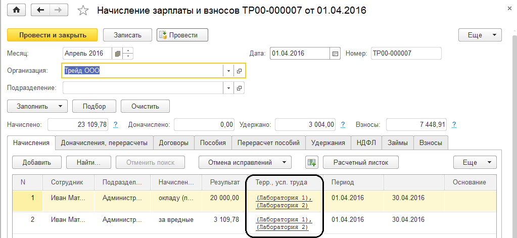 - Все настройки будут учтены при начислении зарплаты и взносов и формировании отчетности.