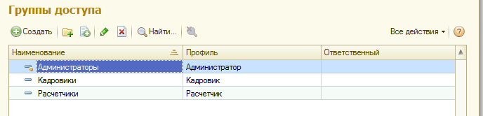 При этом назначить профили доступа: "Расчетчики" = Расчетчик, "Кадровики" = Кадровик.