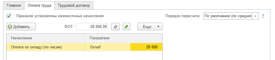 Сотруднику должен быть установлен график суммированного учета кадровыми документами. Например, сотрудник Ней П. принимается на работу в ООО "Трейд" на график Сменный 2/2 Б и с оплатой по окладу по часам.