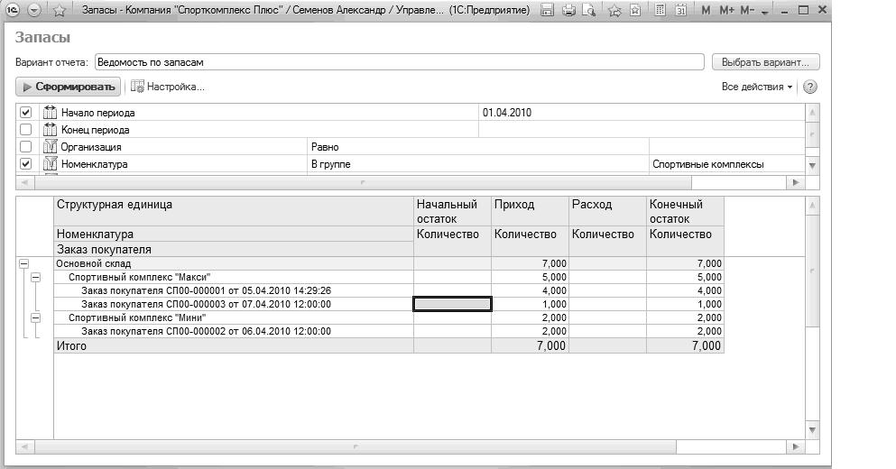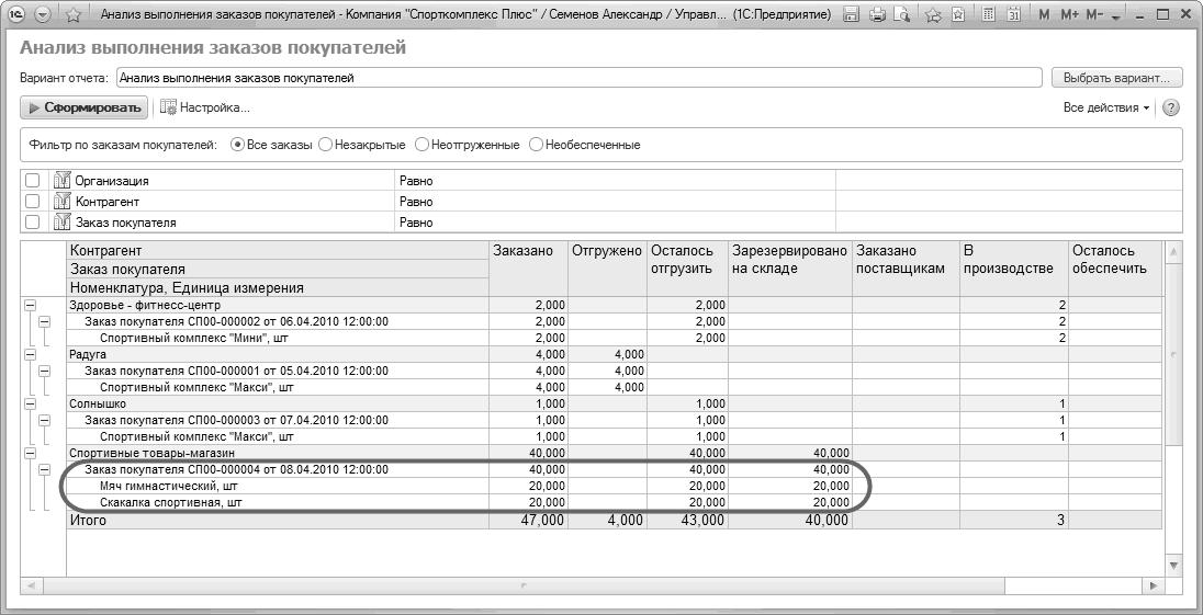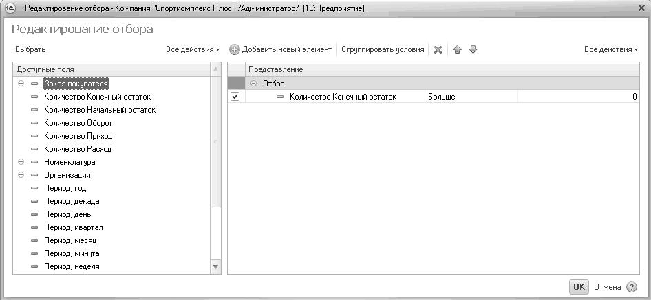 Рис. 46. Учет резервирования товаров под заказ покупателя в отчете